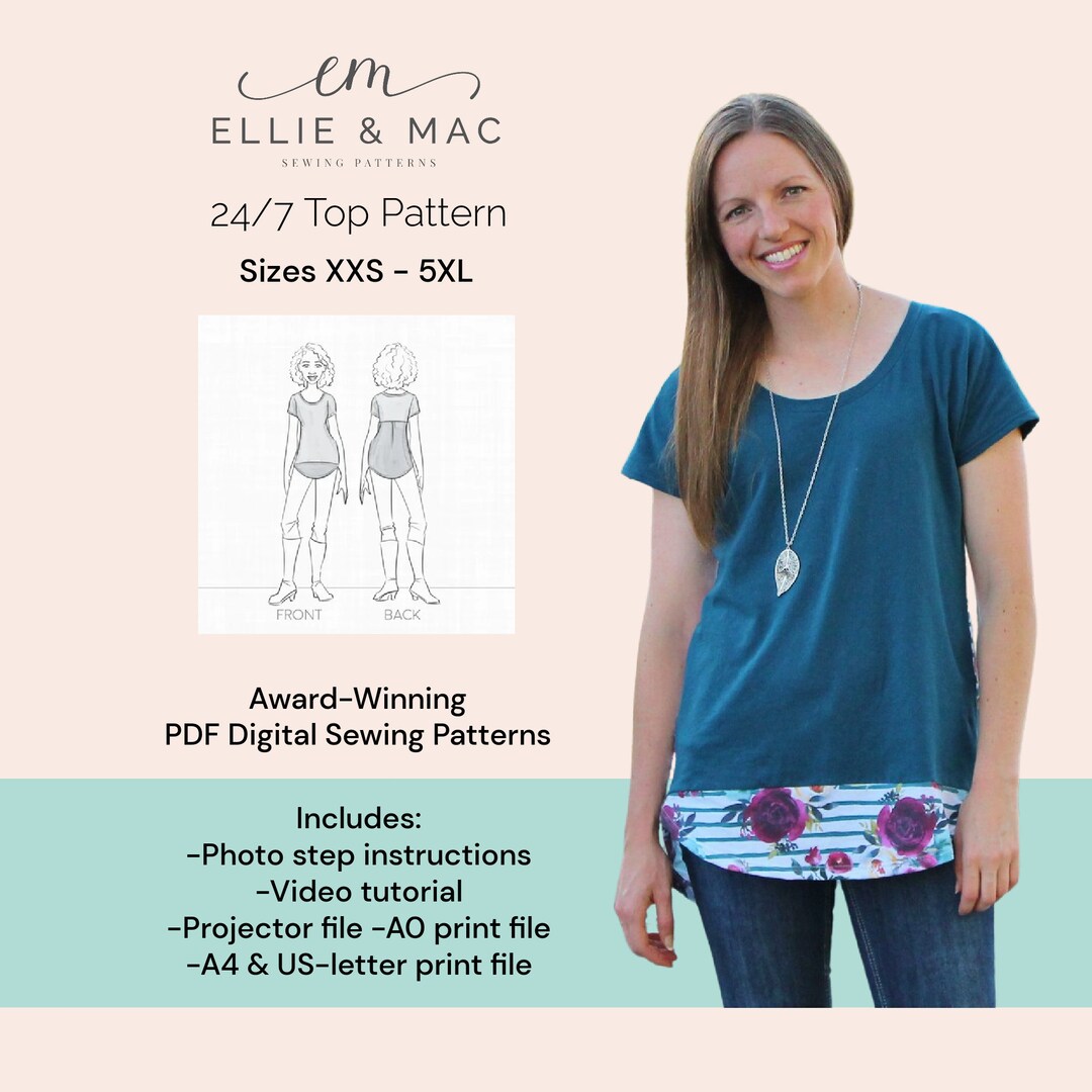 Basic 24 7 Top Sewing Pattern With Video Tutorial Sizes Xxs Etsy