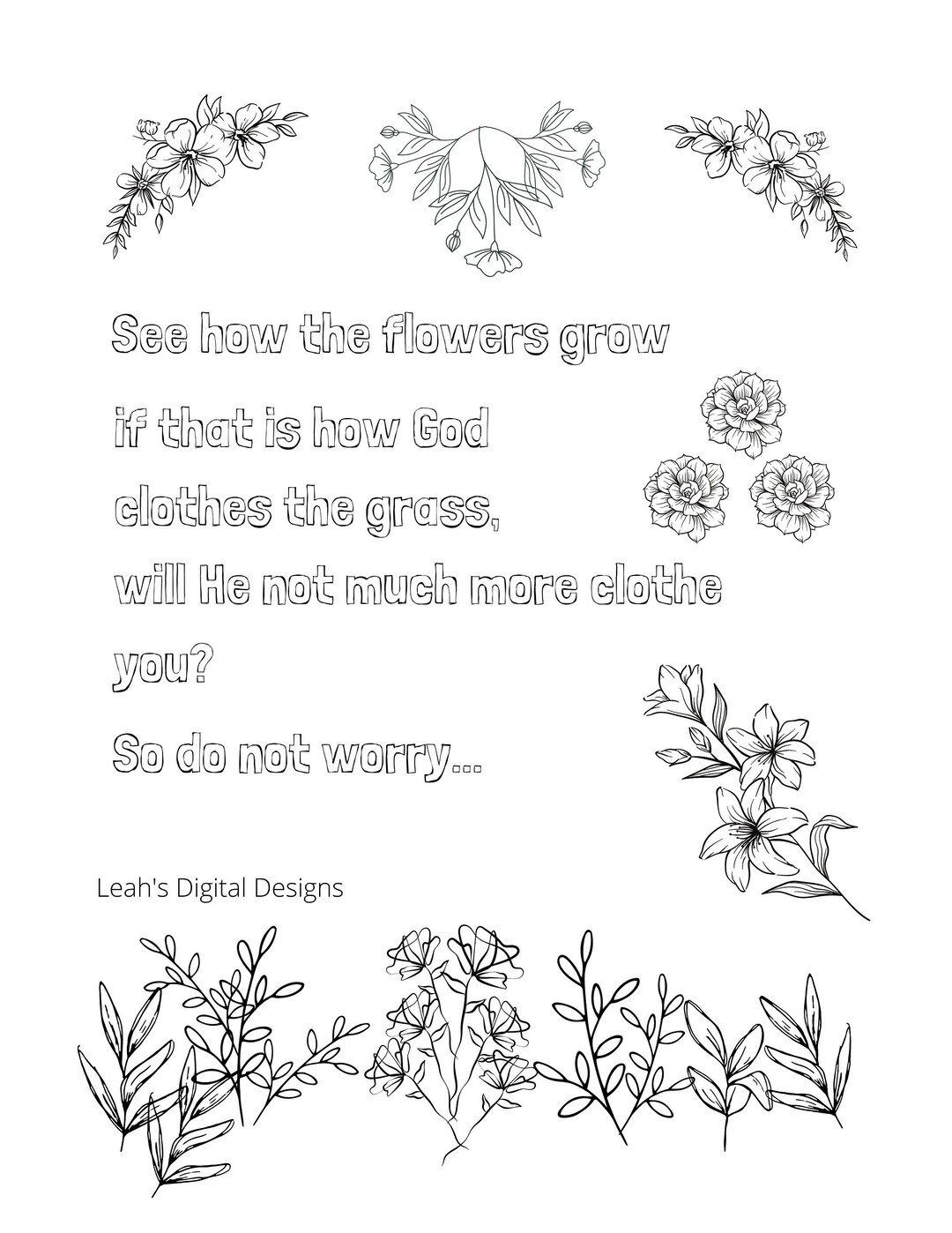 Coloring Page Matthew 6 28 31 Etsy Uk